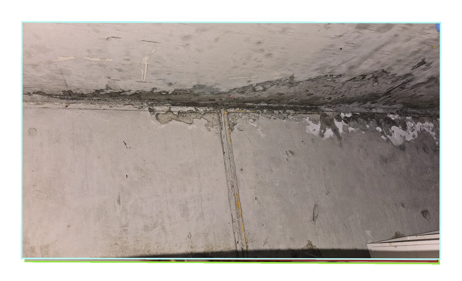 전 구역을 스캔한 결과 냉수관 이음부의 균열 에서 지속적으로 물이 새고 있음을 확인했습니다.