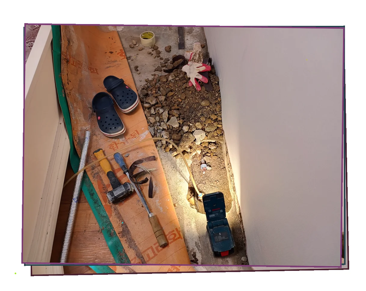 벽면과 바닥 전체에 습기가 퍼져있는 상황이었습니다.